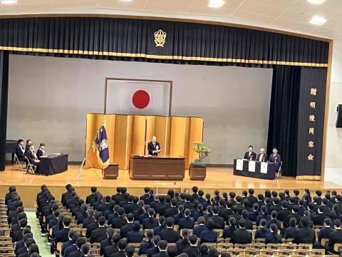 中島校長先生からはさらに、「令和10年に小倉高校は創立百二十周年を迎えます。その記念すべき年に最高学年として立つのが今日ここにいる皆さんです。輝かしい歴史と伝統を受け継ぎ、さらに発展させていくという強い気持ちを持って、この3年間のプログラムに主体的かつ真摯に取り組み、大きく成長してほしいと思っています。